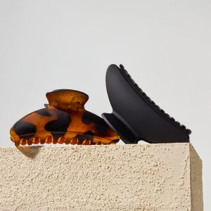 Black & Tort Curved Claw Clips 2pc Set – Medium