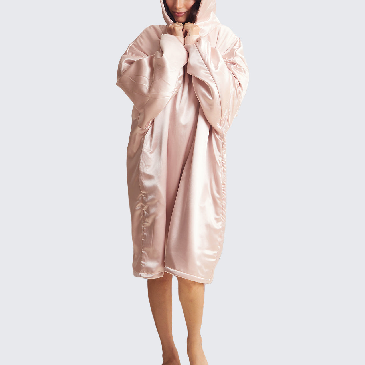 - Weighted Satin-Hug Calming ?C Evenly-distributed weight is stitched into the hem and hood. wrapping you in the gentle pressure of a wearable weighted blanket to help quiet anxiety and cue instant relaxation.