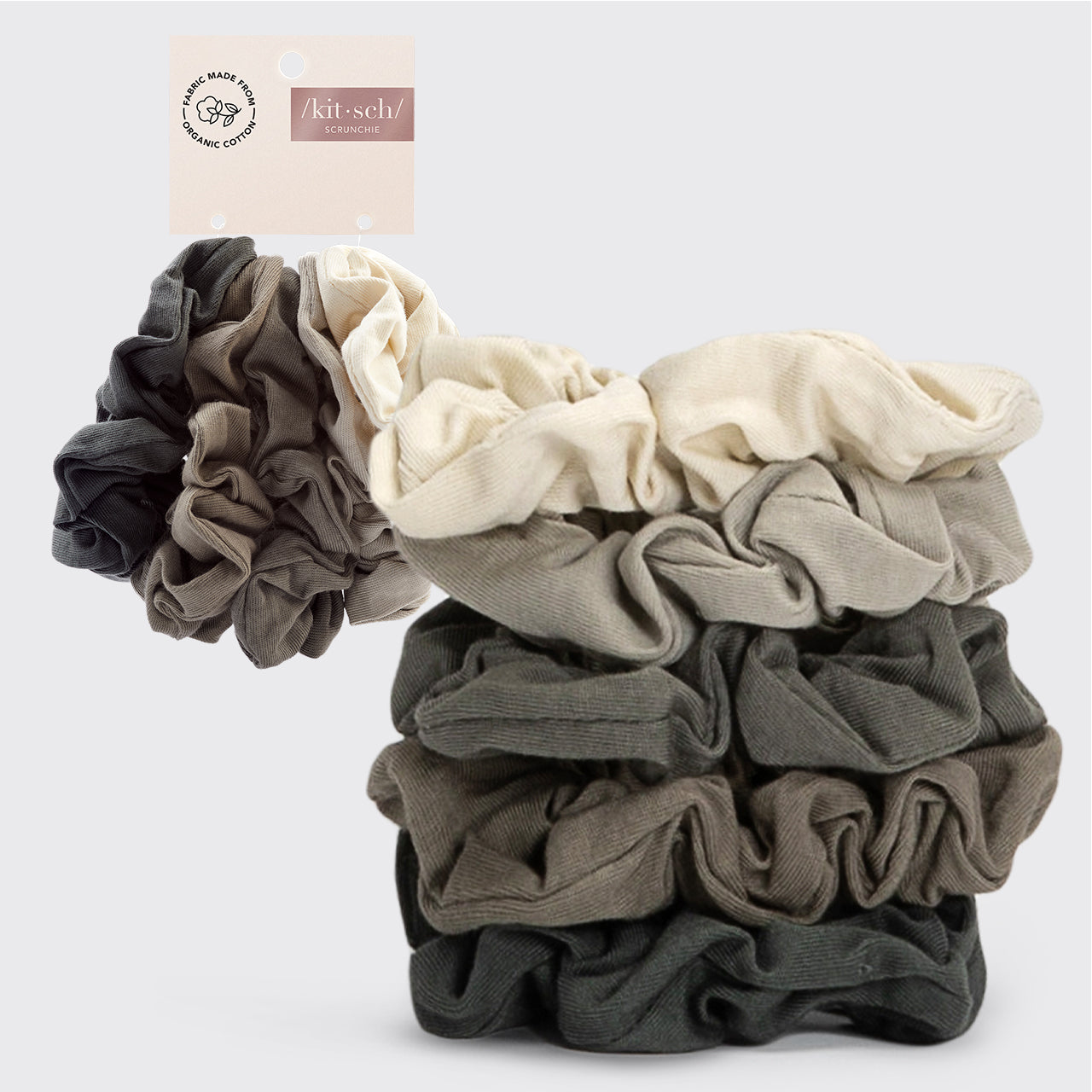 Gray & Cream Knit Scrunchies – 5pc Set