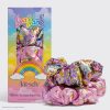 - Each package includes four satin scrunchies in rainbow leopard prints inspired by the iconic Lisa Frank aesthetic