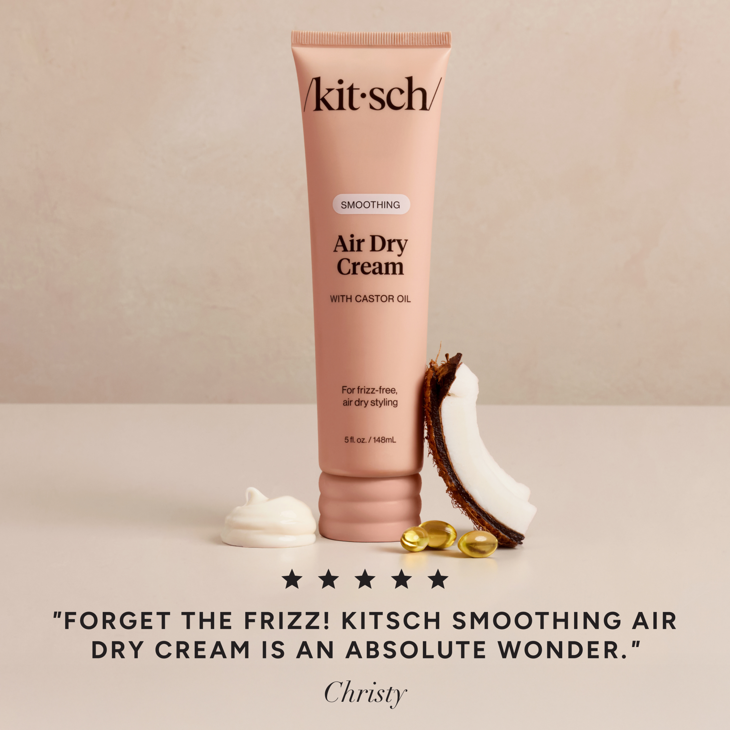 An air dry so good. it looks straight from the salon. Kitsch Smoothing Air Dry Cream enhances the appearance of natural texture and locks down frizz for up to 24 hours* with a weightless blend of castor oil. squalane. and coconut oil.